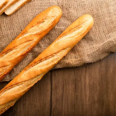 Long and slender French bread with a crisp crust and soft interior, perfect for sandwiches or as a side for soups and salads.